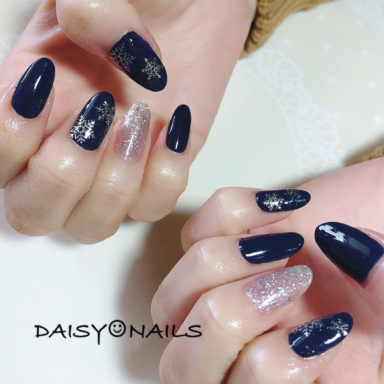 冬 クリスマス ハンド シンプル ラメ Blue Daisyのネイルデザイン No ネイルブック